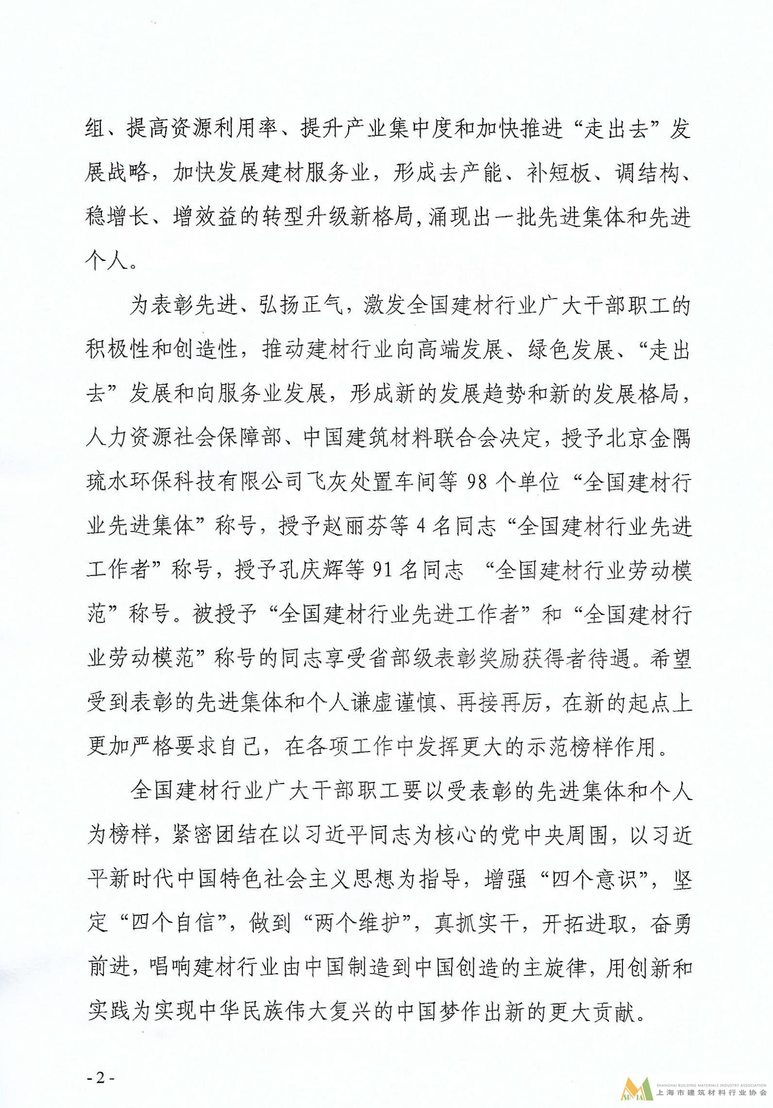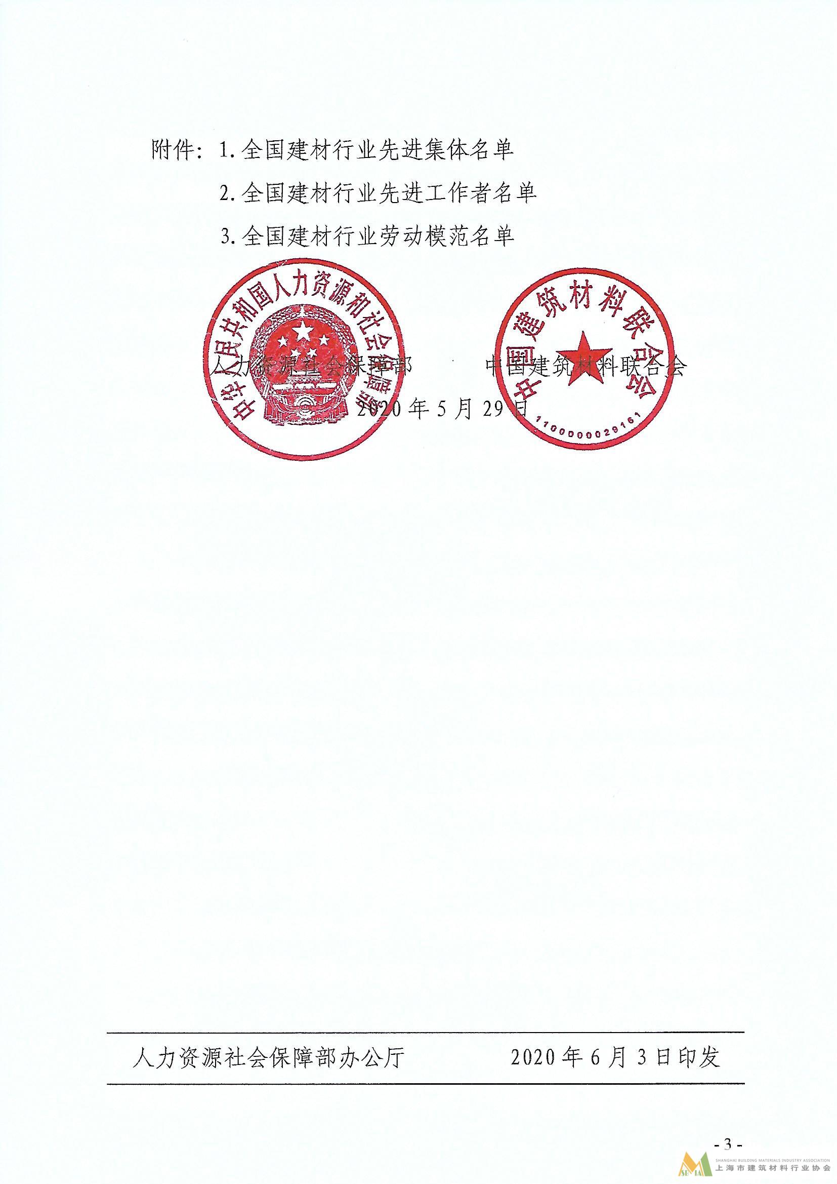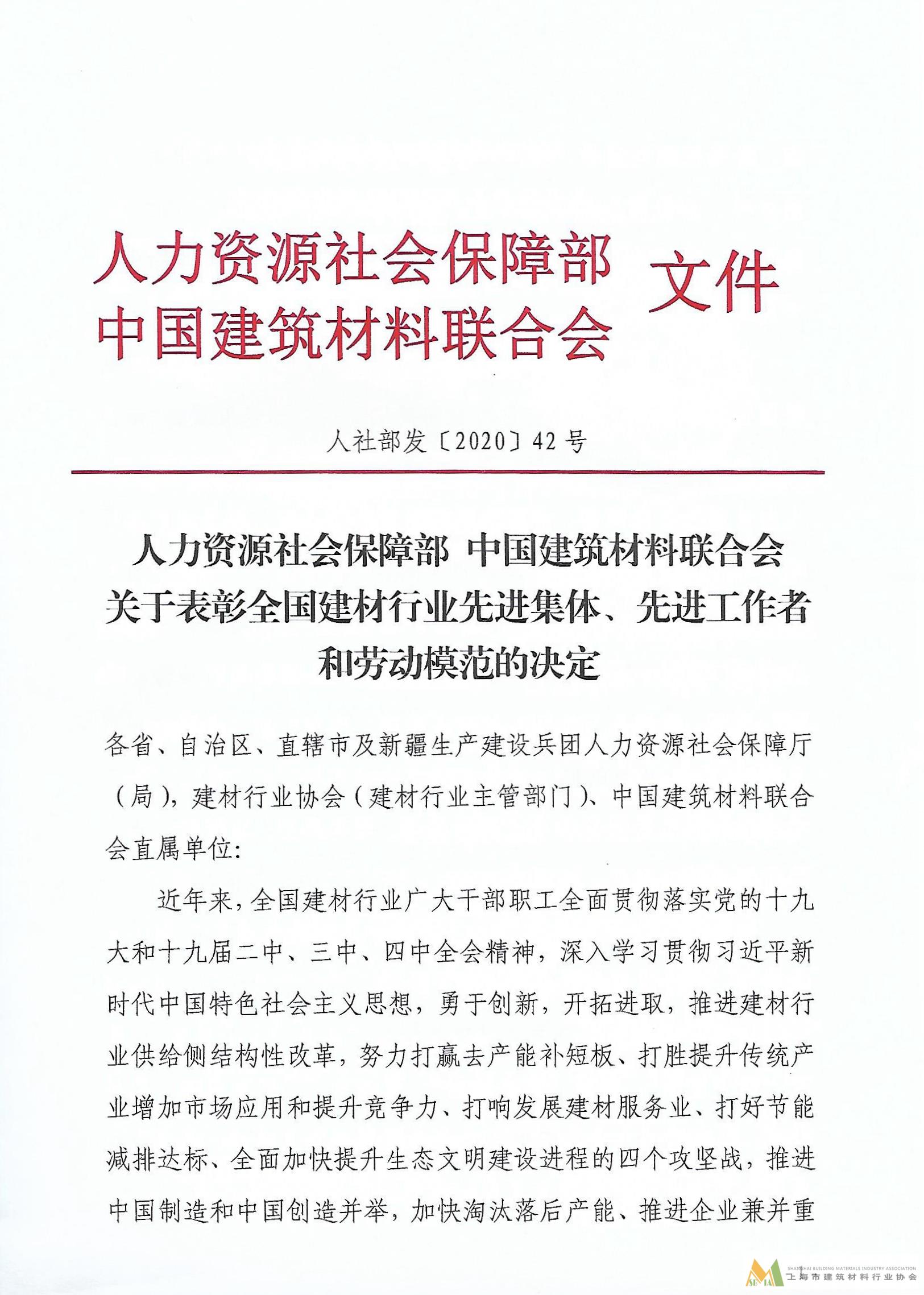 人力資源社會保障部 中國建筑材料聯(lián)合會關(guān)于表彰全國建材行業(yè)先進(jìn)集團(tuán)、先進(jìn)工作者和勞動模范的決定