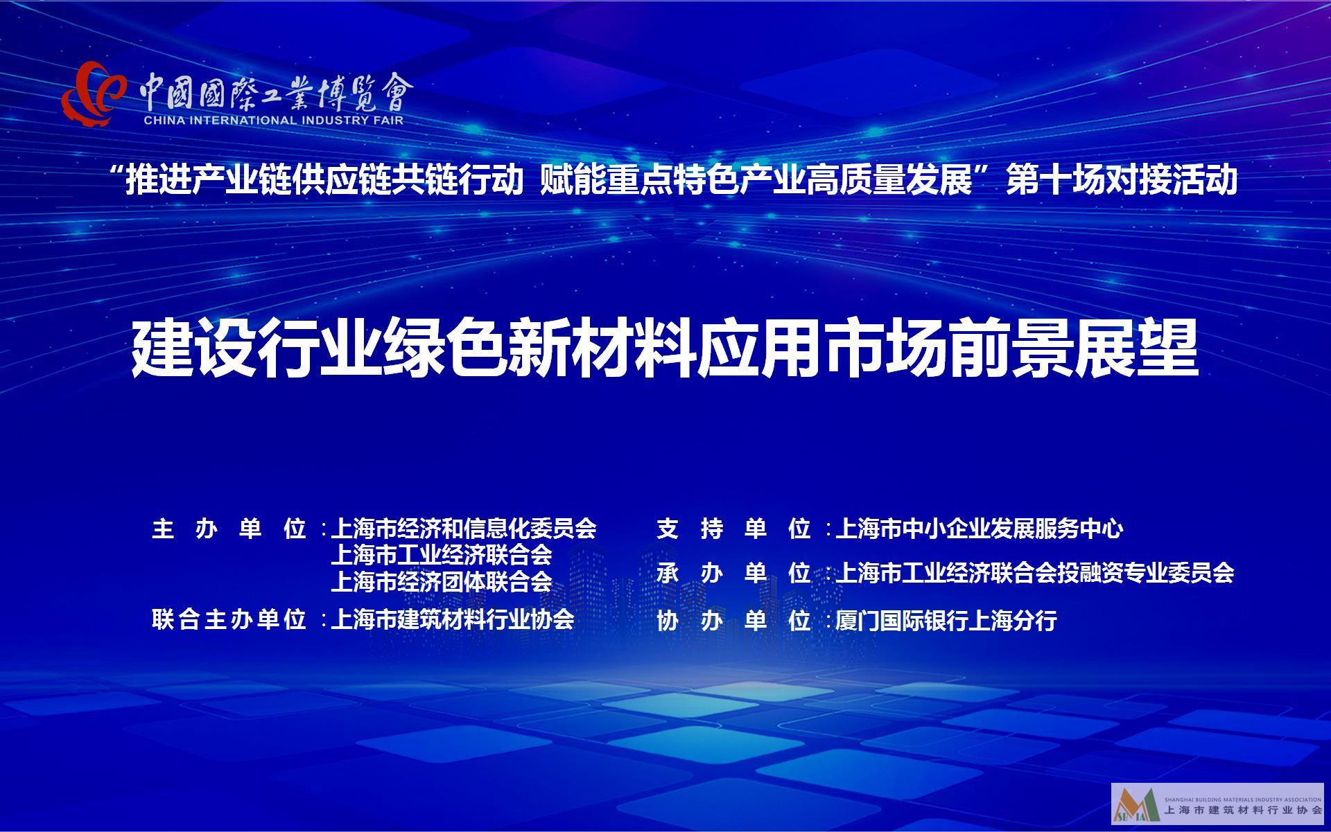 “推進(jìn)產(chǎn)業(yè)鏈供應(yīng)鏈共鏈行動(dòng),賦能重點(diǎn)特色產(chǎn)業(yè)對(duì)接”——第二屆長(zhǎng)三角高端產(chǎn)業(yè)及金融服務(wù)大會(huì)之建設(shè)行業(yè)綠色新材料應(yīng)用市場(chǎng)前景展望專(zhuān)場(chǎng)對(duì)接成功舉行