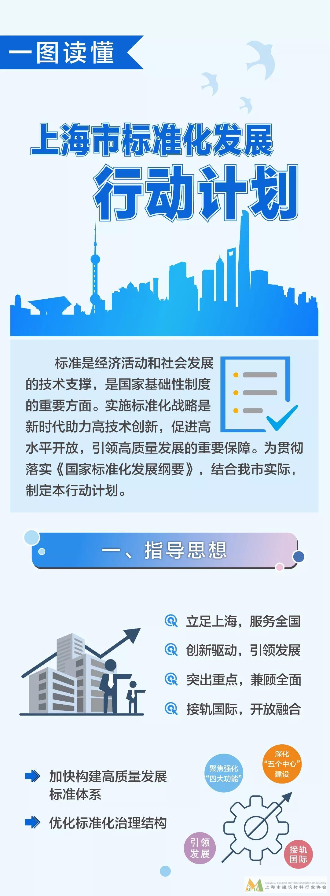 為貫徹《國家標準化發展綱要》,上海《行動計劃》按照中央對上海的發展定位,堅持“創新驅動、引領發展,突出重點、兼顧全面,立足上海、服務全國,接軌國際、開放融合”原則,聚焦落實國家重大戰略任務、推動城市數字化轉型、建設人民城市等方面,對總體要求、重點任務、保障措施等作出規定,推動構建上海標準化工作的“四梁八柱”,明確提出“建設國際標準化高地,率先打造高標準引領高質量發展、促進高水平開放示范城市”的工作愿景。